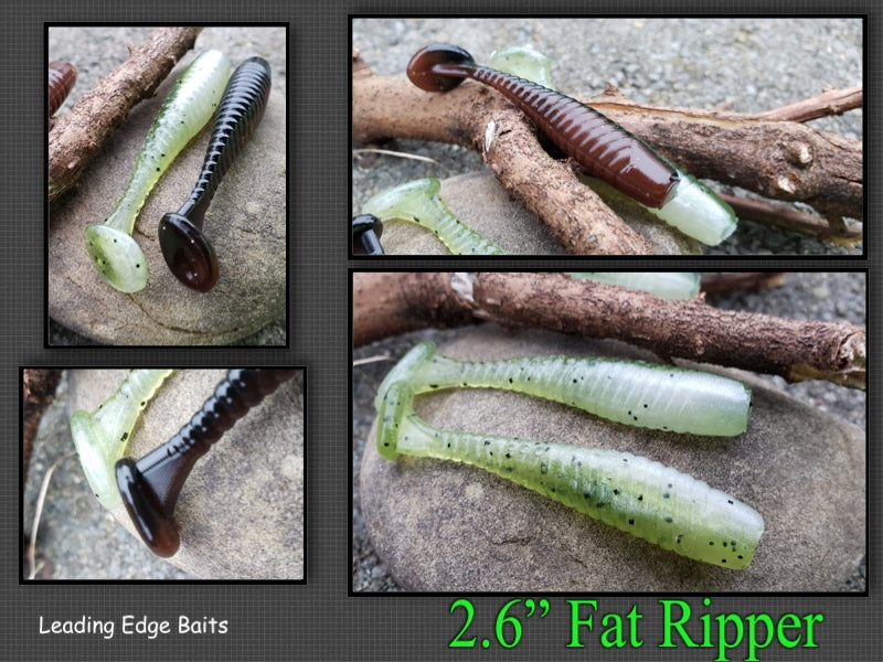 The Little Rip’s big brother! Same tail action as our popular Little Rip swimbait but in a fatter profile. This bait really excels as a jig trailer! The Fat Rip is a huge hit when fishing in the Northeast. This bait features subtle ribs along the body with a wide paddle tail that kicks back and forth when swimming this bait back to the boat/shore. SOLD IN 10 PACKS.
