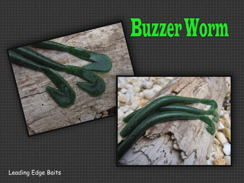 Our BUZZER WORMS are 7 1/2" long and meaty! These are EXCLUSIVE to Leading Edge Baits! These baits are great fished on a texas rig, in the weeds for largemouth. Sold in packages of 8.