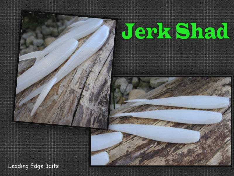 Our Jerk Shad is perfect for imitating injured baitfish. These baits are poured with a special blend of plastic making them dance and jerk throughout the water column. These baits can dance! Finished baits are 4.25" long. Sold in packs of 10.