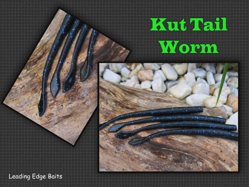 The offset, "Kut" tail of our 5" Kut Tail worm provides an erratic action when rigged on a Texas Rig. Sold only in packages of 10.