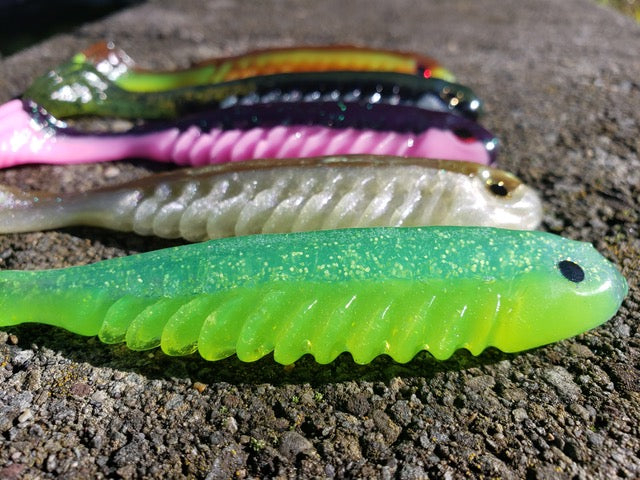 Our Viber series swimbait sends all the right vibrations throughout the water column. Featuring deep ribs along the belly section and 3D eyes for that vivid appearance. Hand poured in lifelike color patterns to truly match whatever the bass are keying in on. Sold in packs of 6.